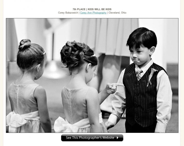 Today I was tickled pink to find out that an image from Tiffany and Chris’s wedding placed in a contest run by ISPWP. ISPWP is an organization for wedding photographers that prides themselves on having wedding photographers with the most experience in the world as members. Their requirements to join include having shot a minimum of 50 weddings as a primary photographer, an extensive portfolio review and a referral by a current member among other things. To be a member is an honor in itself and to place in a contest that has such high quality of members is even more of an honor!
