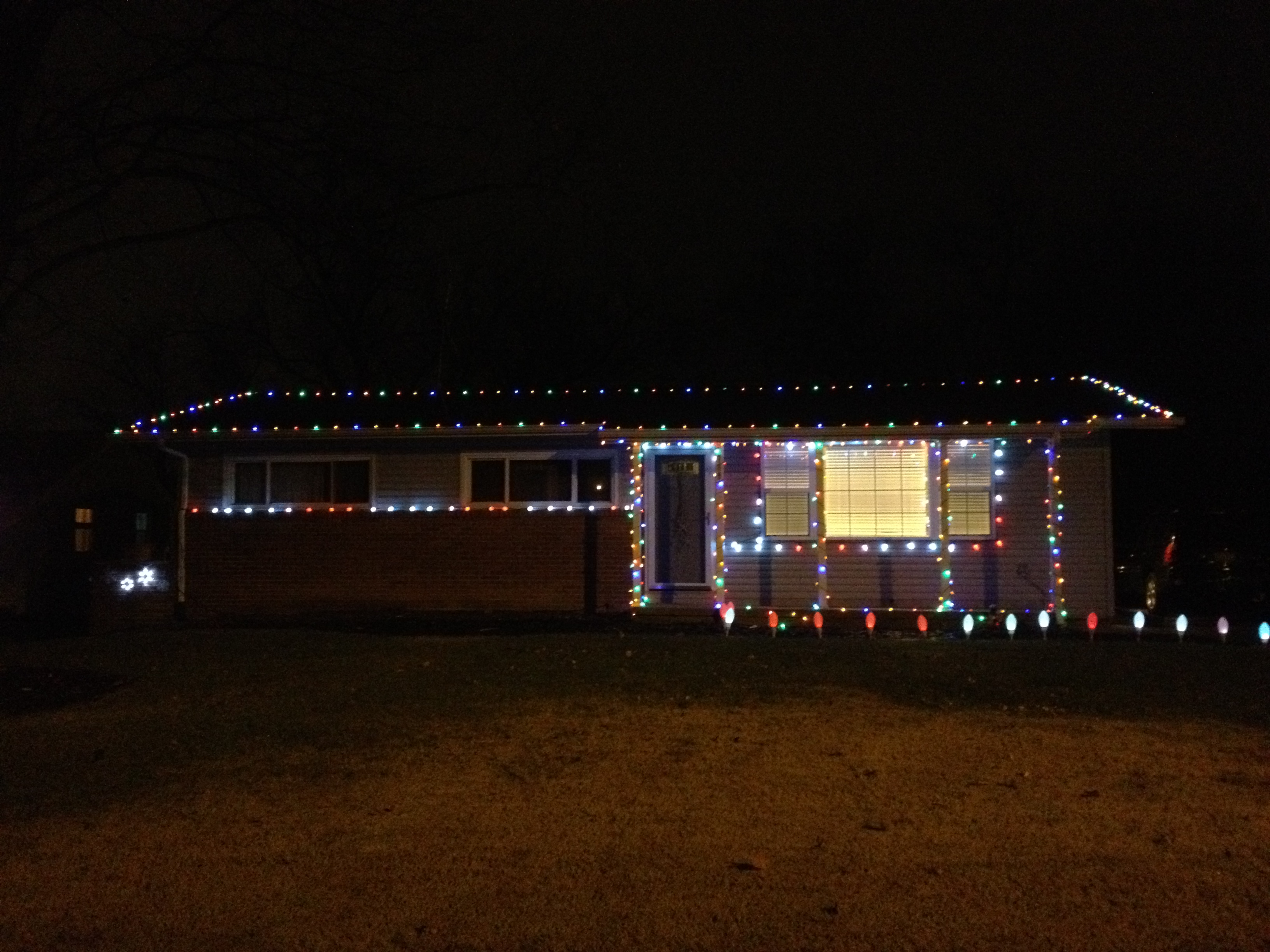Day 20: Seasonal. Yeah yeah, our house skipped thanksgiving but it’s been unseasonably warm here which means in Ohio – get your lights up now unless you wanna do it in snow and negative temps. 🙂 We’ve had it up for a week but off but hubs turned them on last night as other neighbors lit up. Woo!