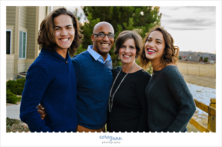 The last session of my day of mini sessions in Colorado was the one that made me most nervous. Due to a bit of a mixup with one of the kids work schedules they weren’t able to make it to the Columbine Open Space before we needed to leave to make it to the farm. By the time we got back I knew that the light would be mostly gone but since they live in the same condo complex as Jill I said I’d be willing to do what I could there with the light we had and the space that was there. Thankfully it actually worked out REALLY well and it ended up being one of my favorites from the day. SUCH a great family with the best smiles ever! Thank you so much for being willing to be a bit offbeat and do a session basically in the randomest place ever!