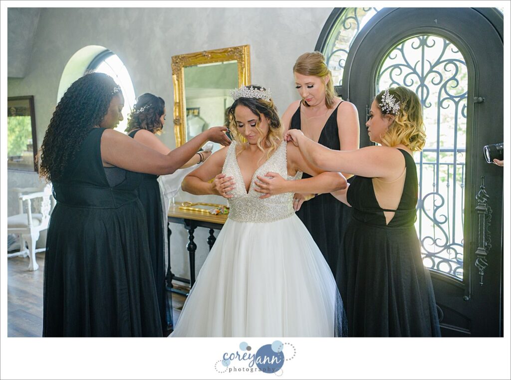 Ceremony & Reception: Bella Amore on Enchanted Acres / Bridal Gown: Allure Bridal via Radiant Bride / Bridesmaids Gowns: Bella Bridesmaids / Cake: Sugarfuse / DJ: Black Tie Entertainment / Hair: Salon Destiny / Makeup: Refeyeance / Menswear: Men’s Wearhouse /