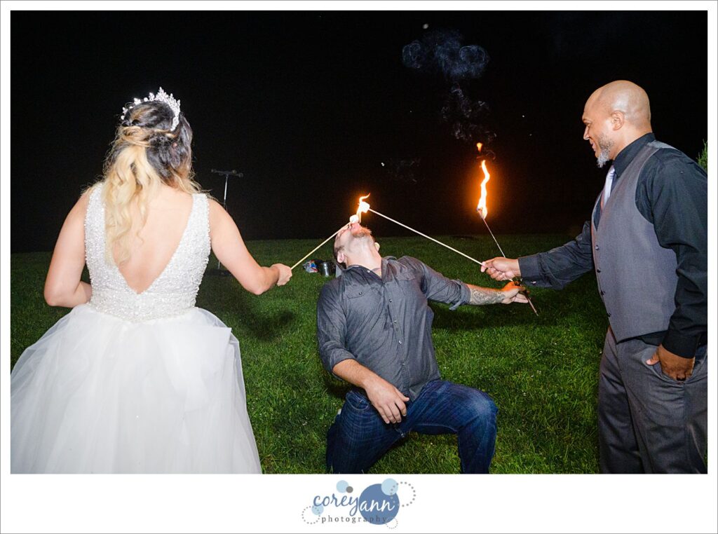 This wedding will definitely be remembered as one of the hottest wedding days of my career.ย Not only because it was ACTUALLY hot (real feel was over 100ยบF!) but the couple was hot, the bridal party was fire and there then was ACTUAL FIRE BREATHERS as entertainment!ย It was such a fun wedding day that will always stand out in my memory for being a bit outside the norm in all the best ways.