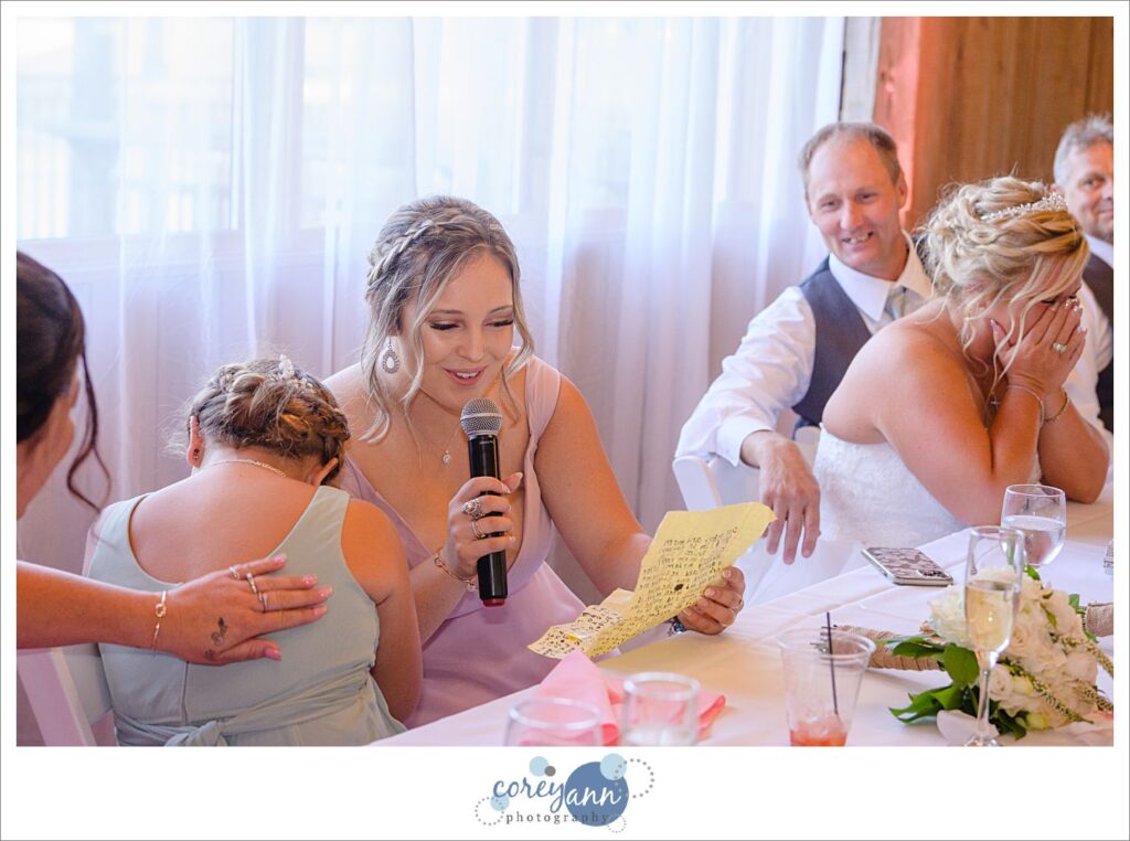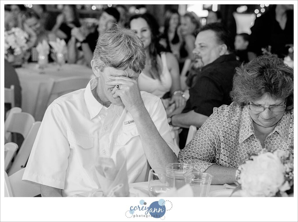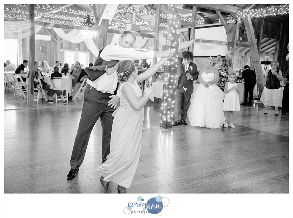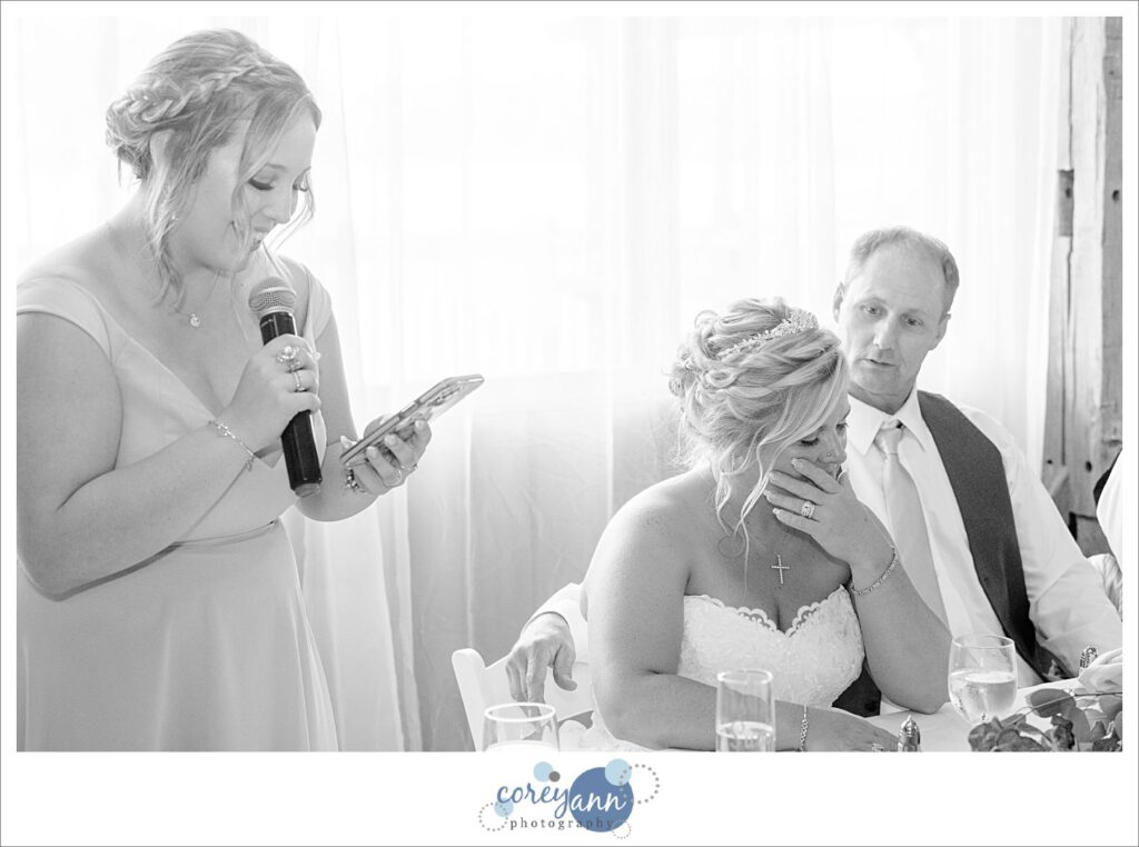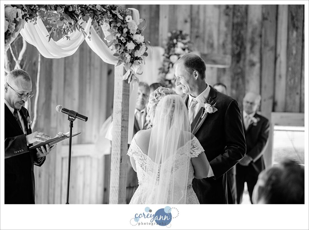 The day of the wedding was a hot one and that caused another memorable part of the day’s story: one of the groomsman sadly passed out cold during the ceremony. Luckily Crystal and Robert thought ahead about the weather the day of their wedding and had a cooler stocked with ice cold water at the door to the barn where the ceremony was held so I RAN to it and grabbed some water for him. After some water and time he was just fine thankfully! It certainly scared us all for a few minutes though. This is why I’m always pushing water the day of a wedding – the heat can sneak up on you!